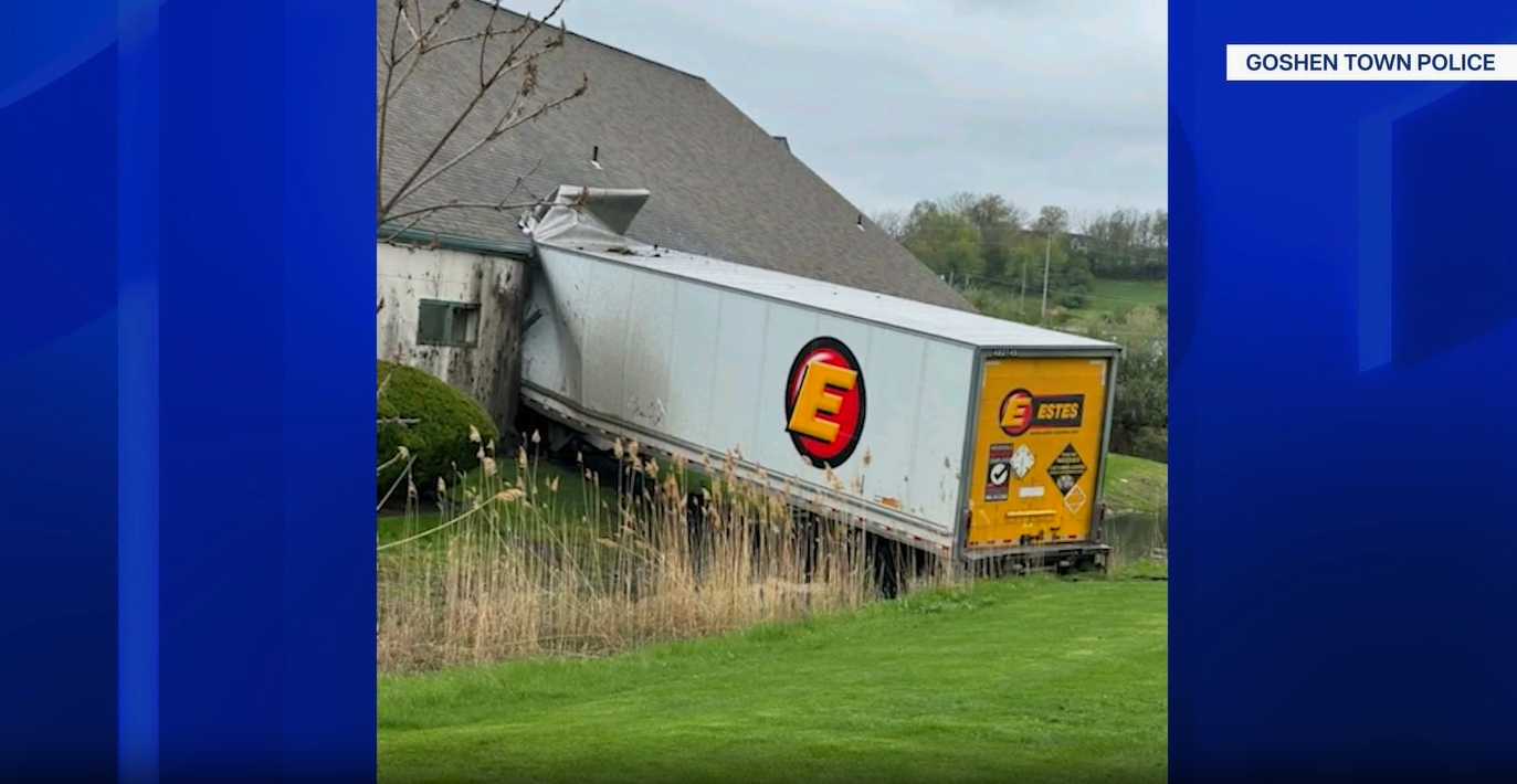 Tractor-trailer crashes into Goshen building