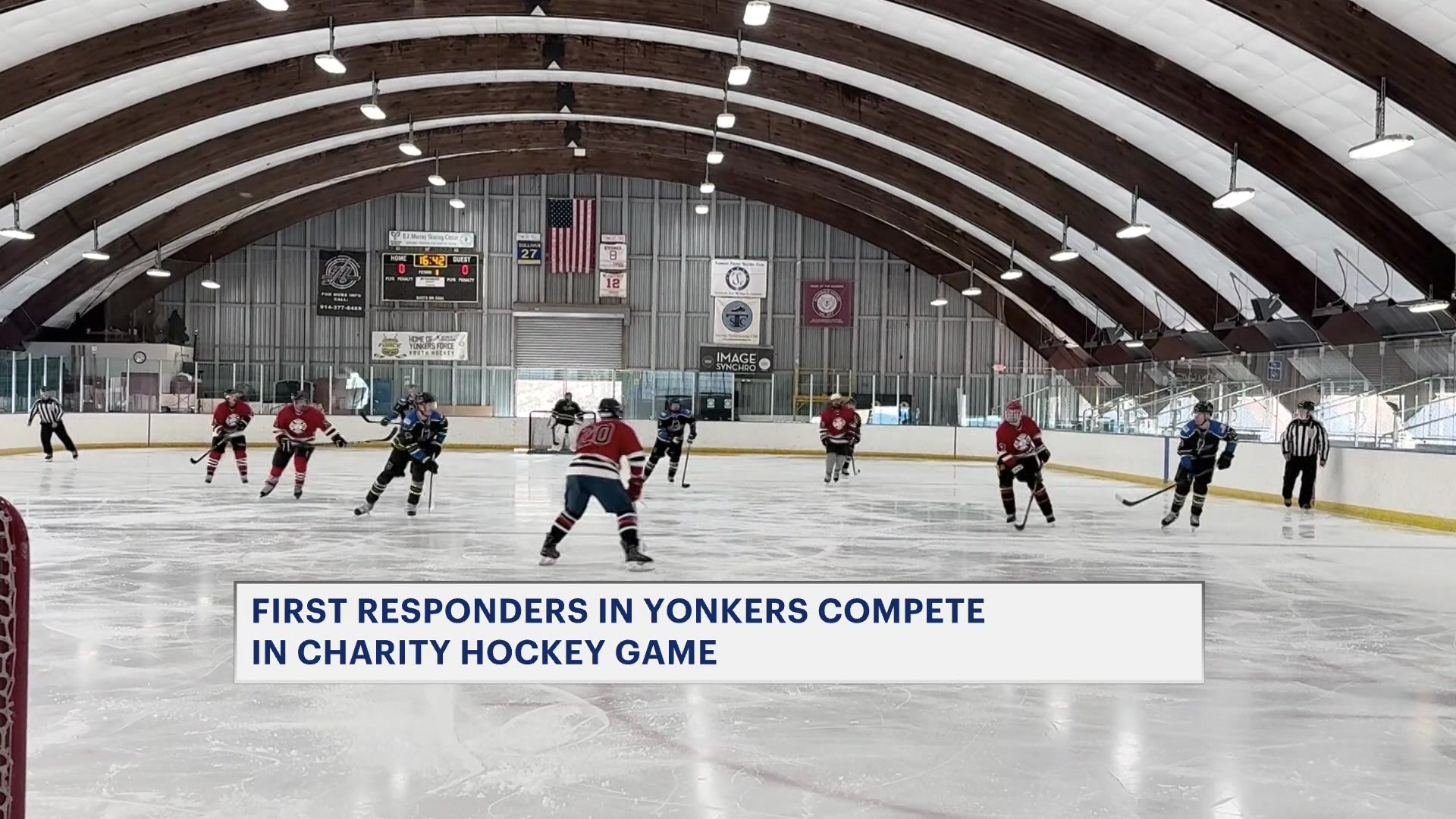 Yonkers police and Yonkers firefighters face off in the annual charity ice hockey game