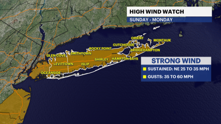 A high wind watch is already posted for all of Long Island for Sunday into Monday due to the chance of wind gusts up to around 60 mph. That can easily lead to power outages.