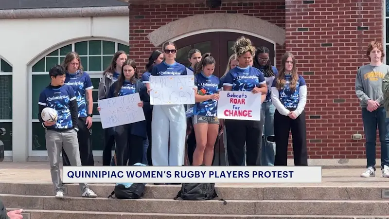 Quinnipiac University's women's rugby players protest against decision to eliminate D1 program