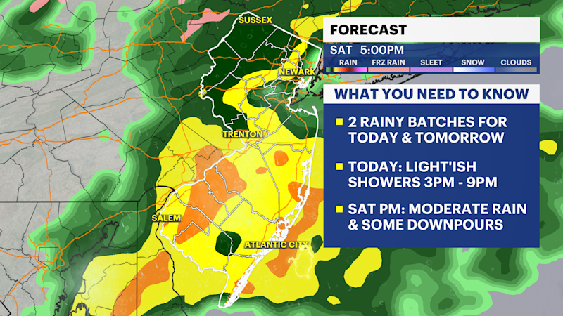 Two periods of rain drop nearly 1 inch between today and tomorrow