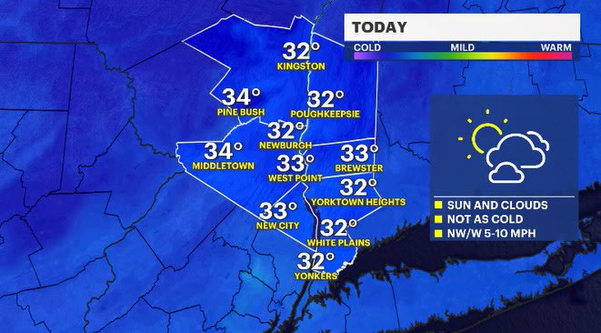 Temperatures plummet from Friday to Saturday as Arctic air surges into the Hudson Valley. Gusty winds will also come along the way for the entire weekend which will make the air feel extremely cold. Temps will only rise into the teens but we do see those numbers back into the 30s by midweek next week.