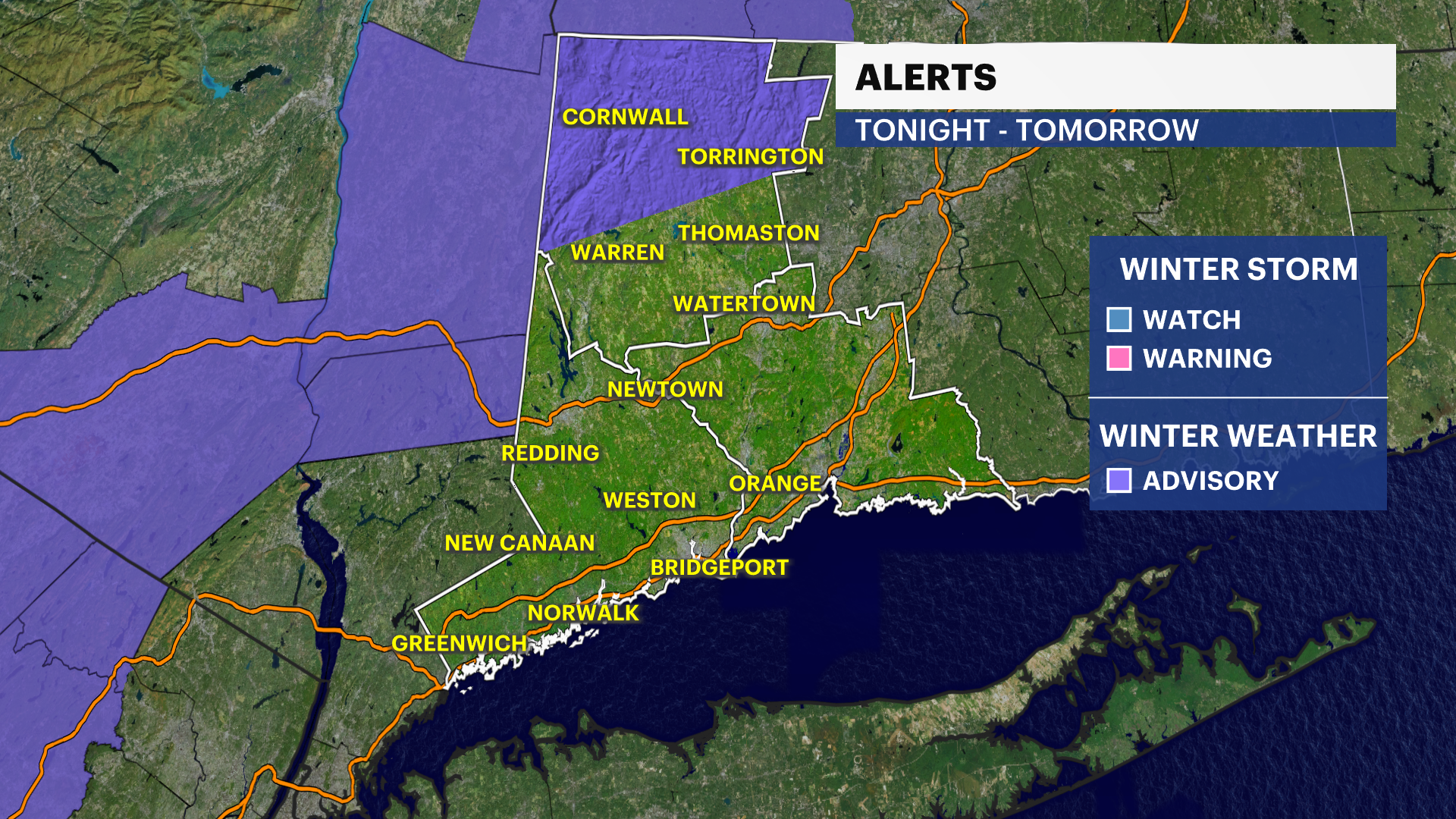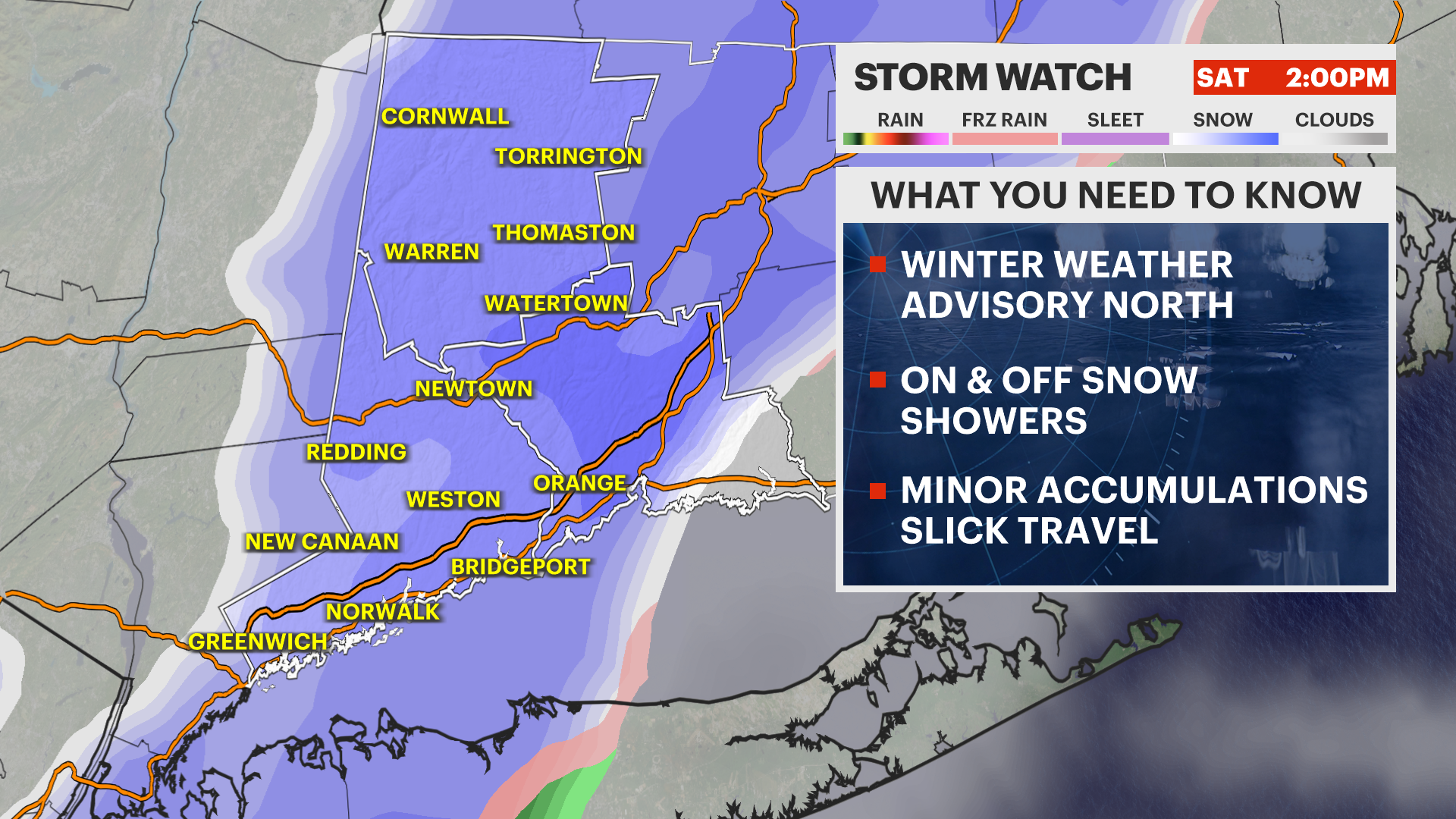 A winter weather advisory has been posted for Northern Litchfield County, but all of Western Connecticut will see some sort of accumulating snow on Saturday.
