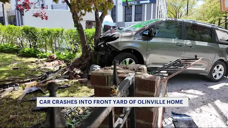 News 12 cameras captured a gray minivan after it smashed into the brick wall lining the yard on the corner of Bronx Blvd and Rosewood St.