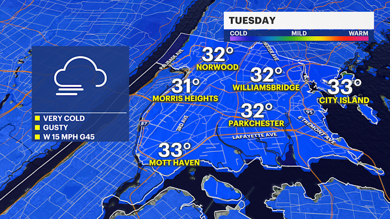 Freezing and windy through New Year’s Even in The Bronx