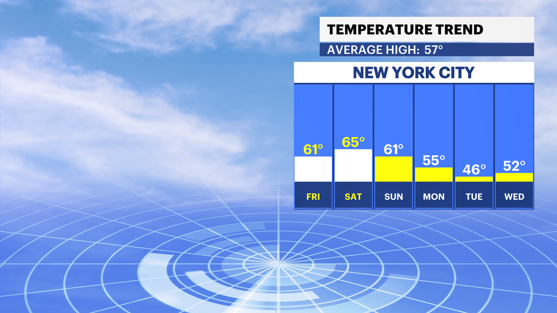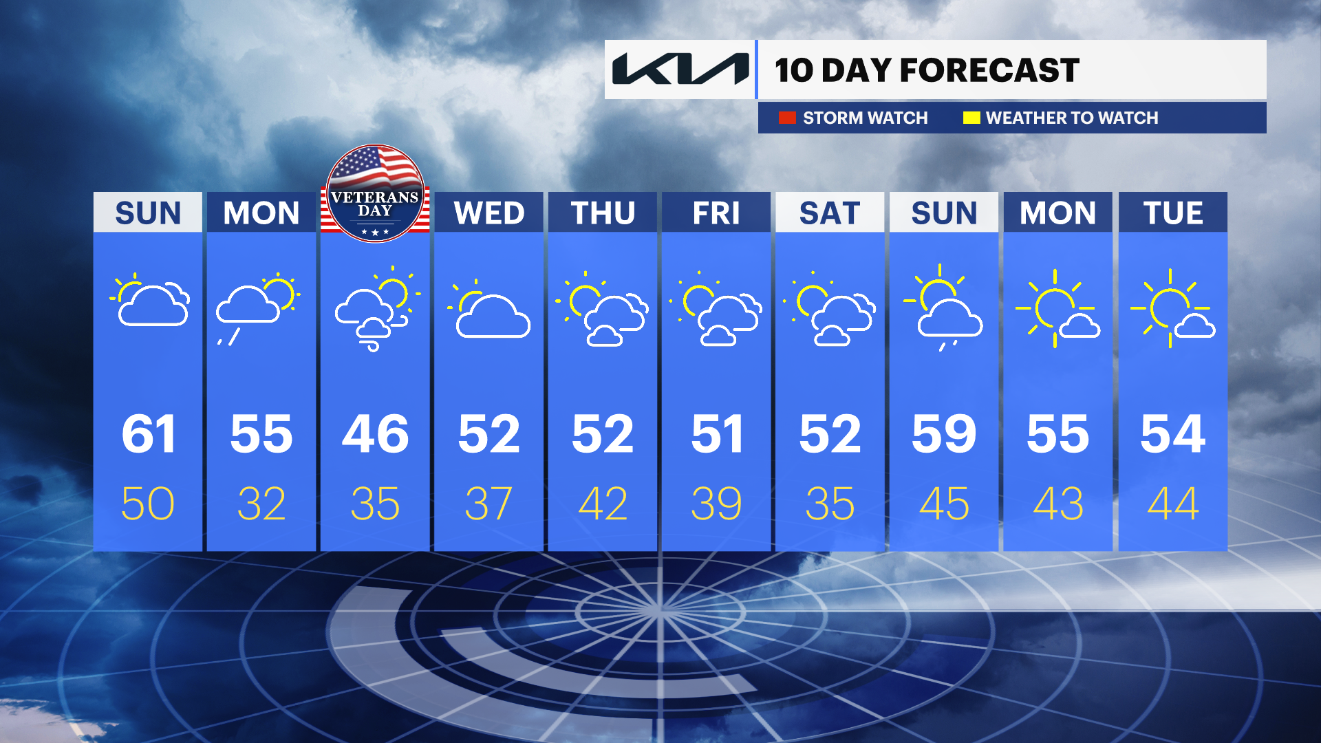 Temperatures next week will trend colder, with highs on Veterans Day struggling to climb out of the mid-40s.
