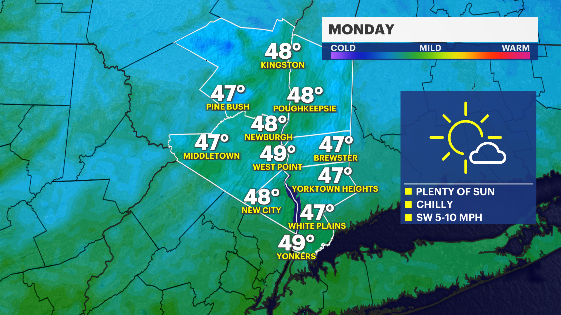 News 12 Storm Watch Team Meteorologist Julian Seawright says it will be a cold but clear on Monday for the Hudson Valley.