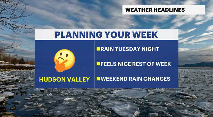 Saturday: Rain, breezy, and mild. Highs in the mid-50s. Lows in the mid-30s.