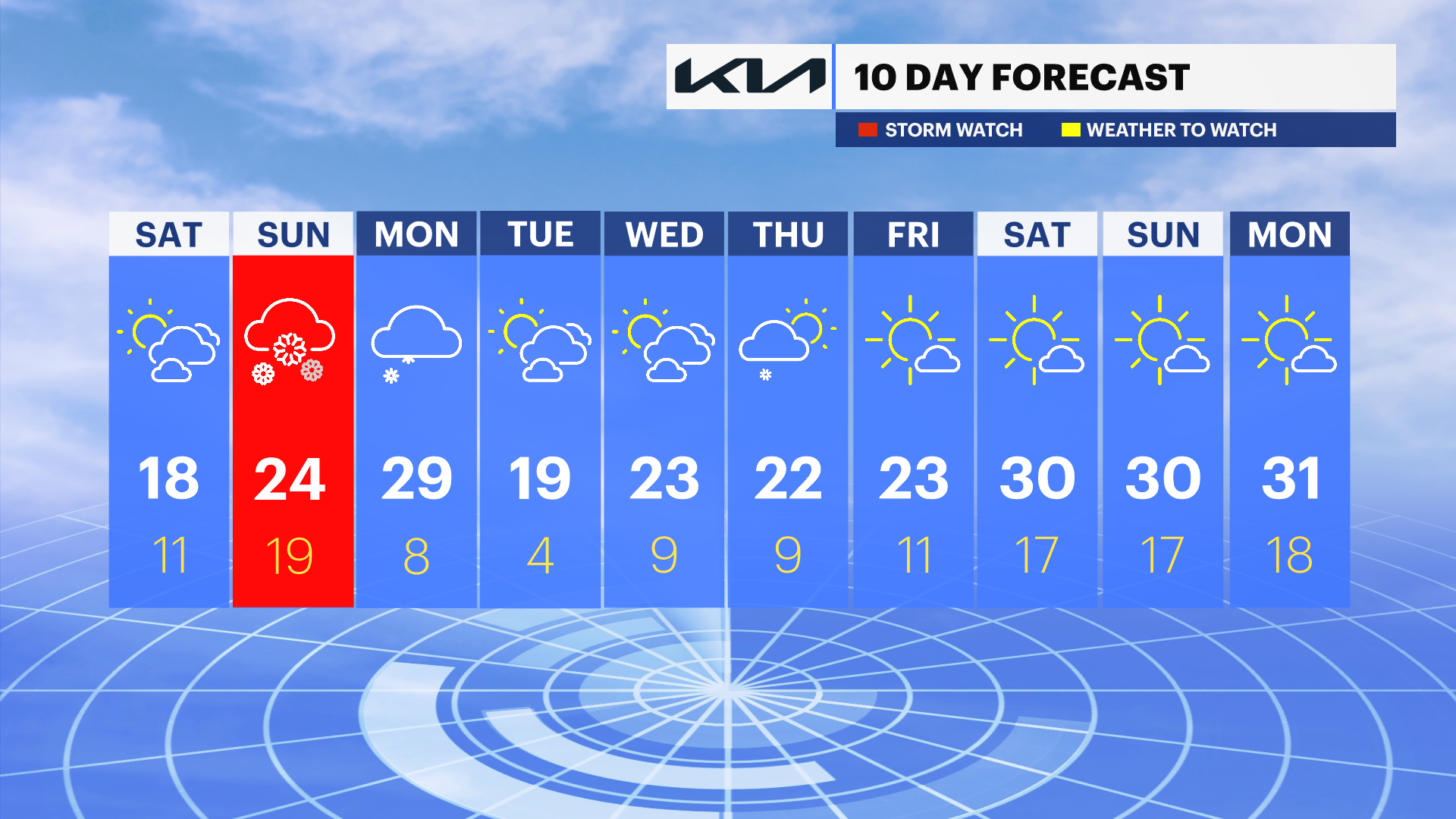 Light snow will begin on Sunday morning and with temperatures in the teens, we expect snow to quickly accumulate. Snow rates will increase quickly mid-morning and early afternoon on Sunday and create whiteout conditions in spots by lunchtime. Some of the quickest snow accumulations will happen early Sunday afternoon.