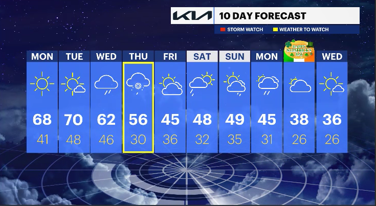 Temperatures will soar to the mid-60s both afternoons, and morning temperatures will be pleasant, near 40-degrees. The average high this time of the year is only the upper 40s, so this is much warmer than typical. It will not break the record warm weather experienced this time in 2016 (temperatures were in the mid 70s).