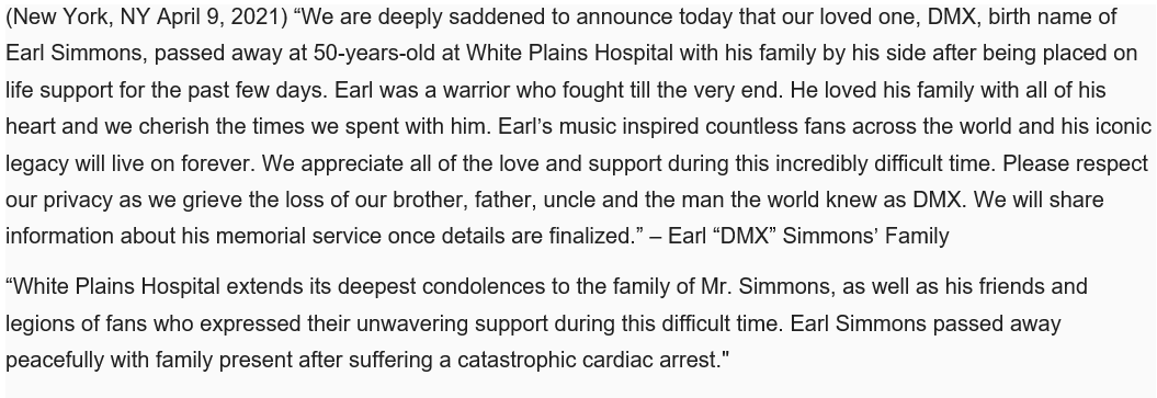 Family and hospital statements on DMX's death