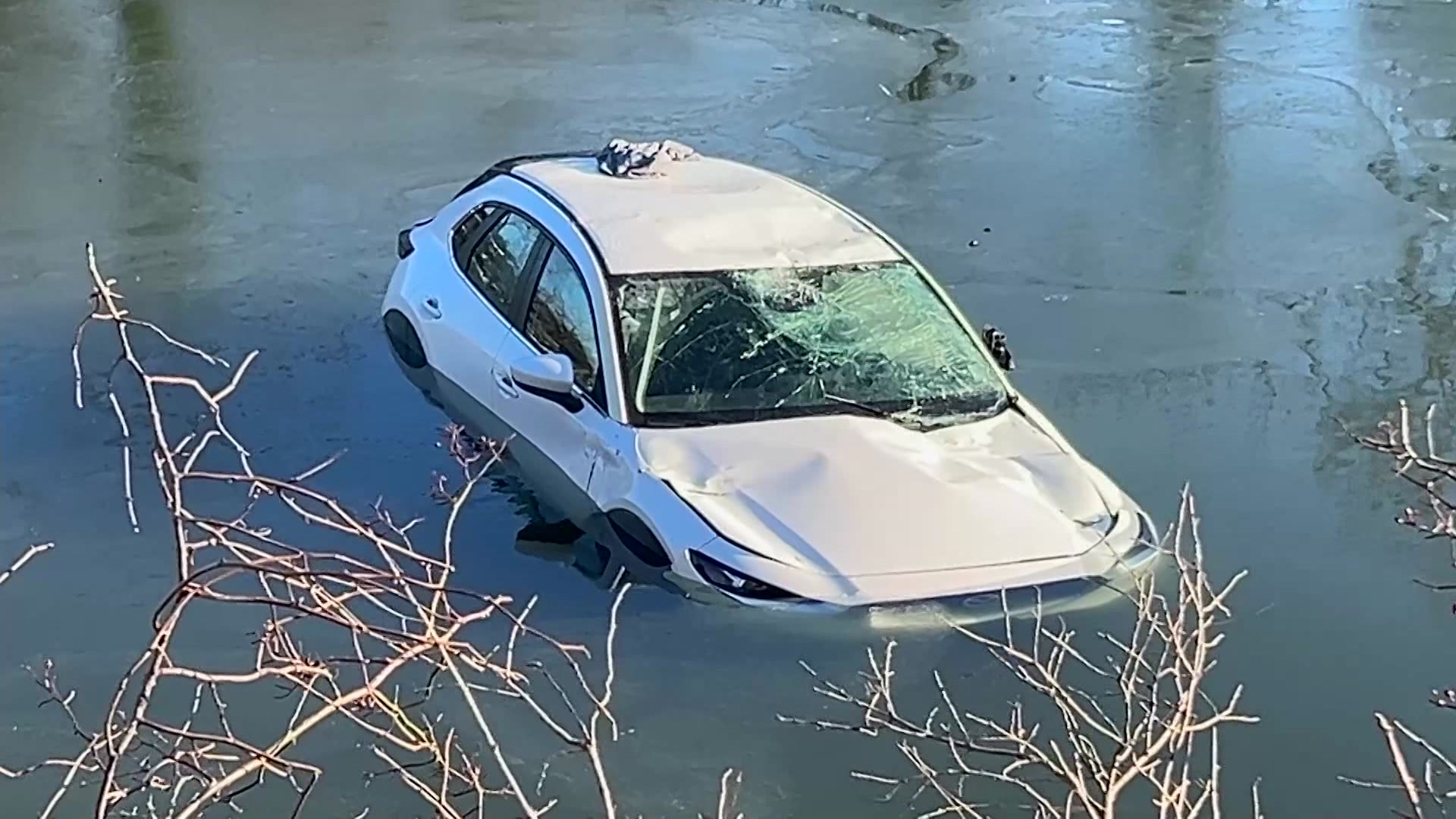 Mamaroneck police respond to car into water; driver standing on top of car