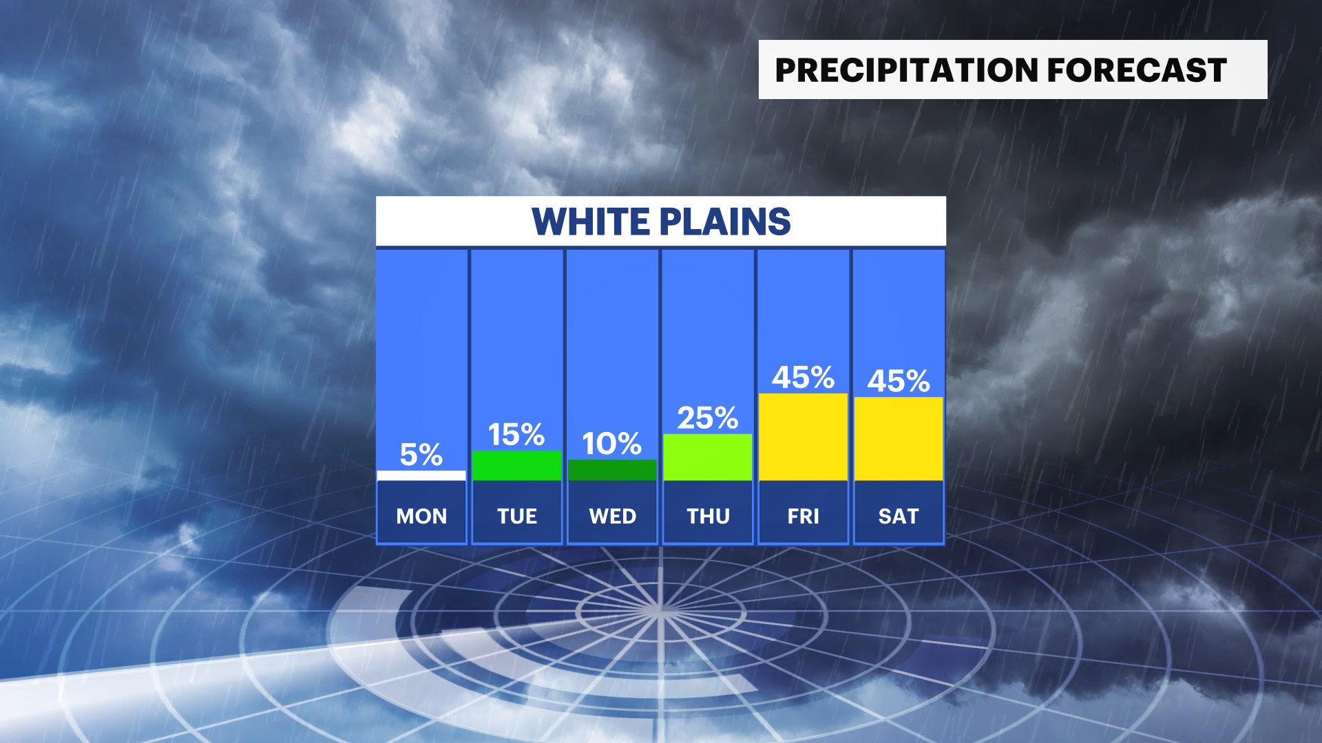 MONDAY: Generally sunny with afternoon clouds. A pop-up shower chance. Highs nearing 80, nighttime lows near 60.