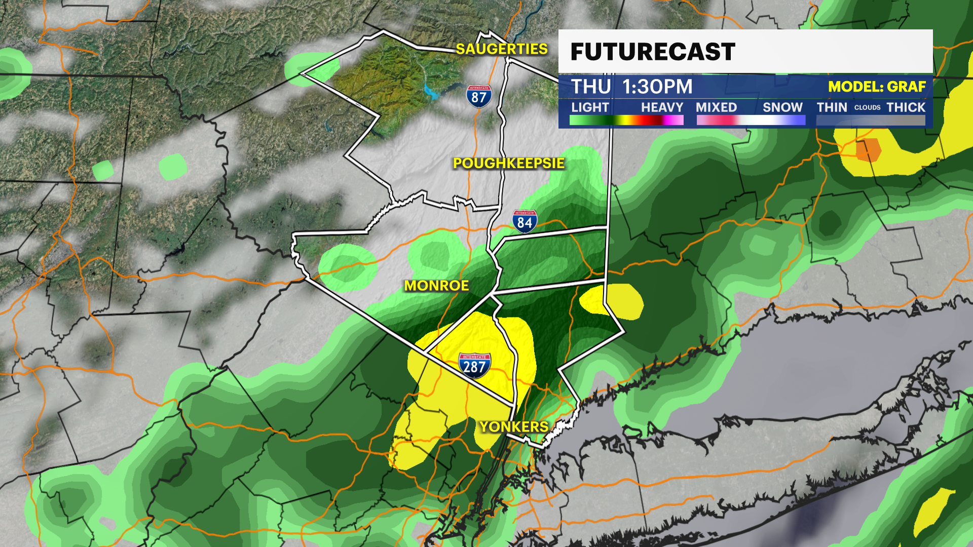 OVERNIGHT: Mostly to partly cloudy with showers arriving early Thursday morning. Lows down to 65.