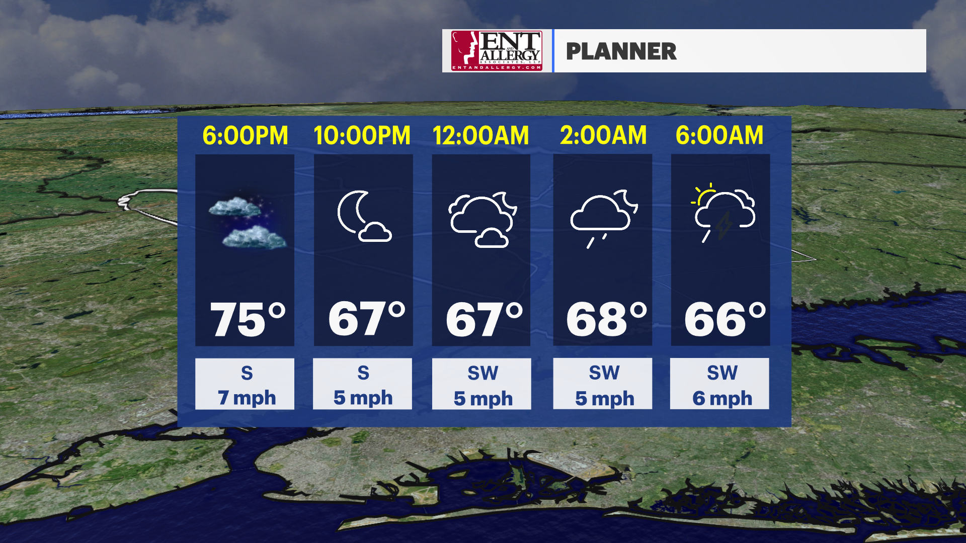 NOW: A mild night ahead before scattered showers and isolated thunderstorms on Thursday.