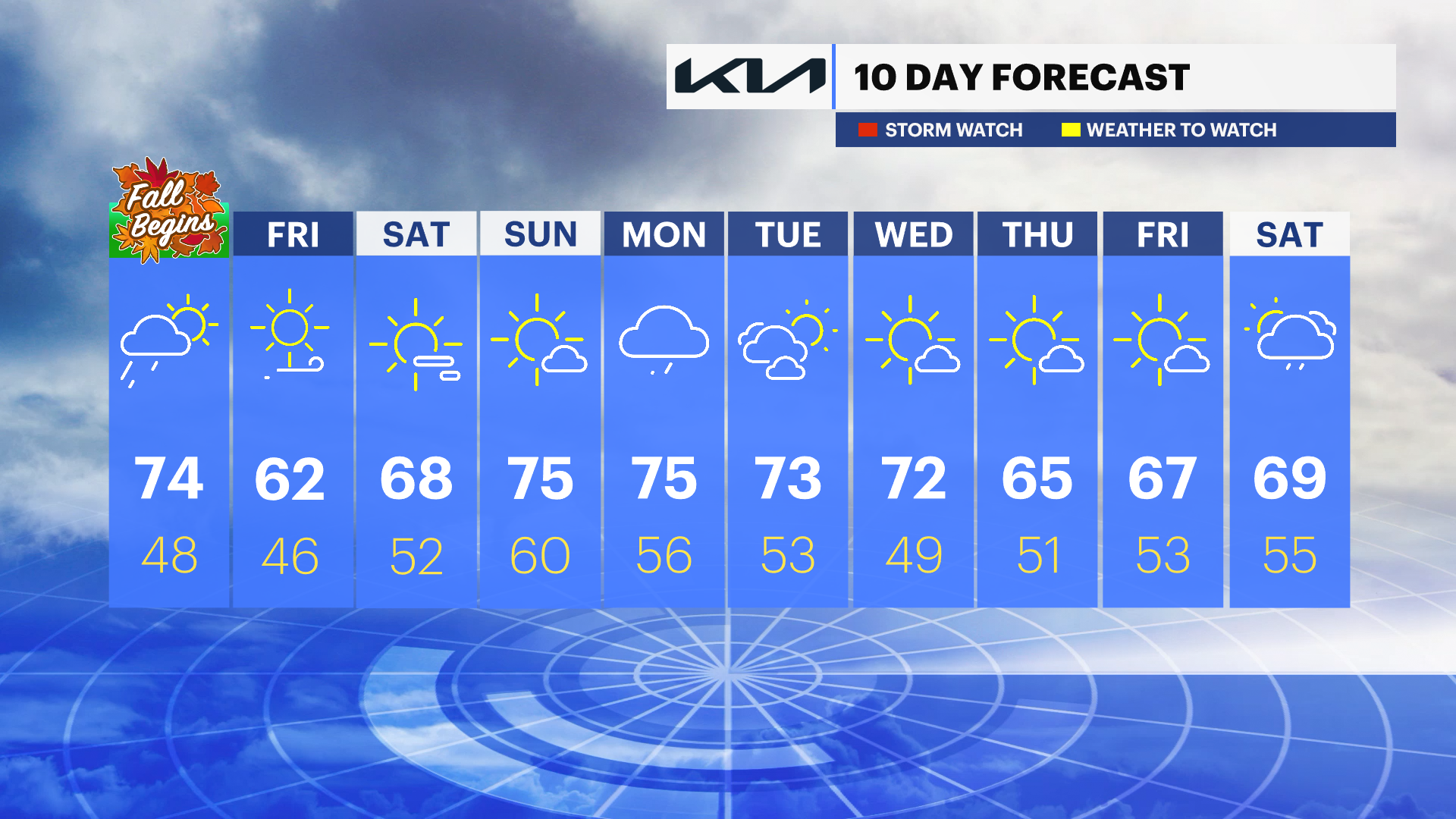 MONDAY - TUESDAY: Next disturbance has the chance to bring a few showers. Not a big deal as of now. Highs in the 70s, lows in the 50s.