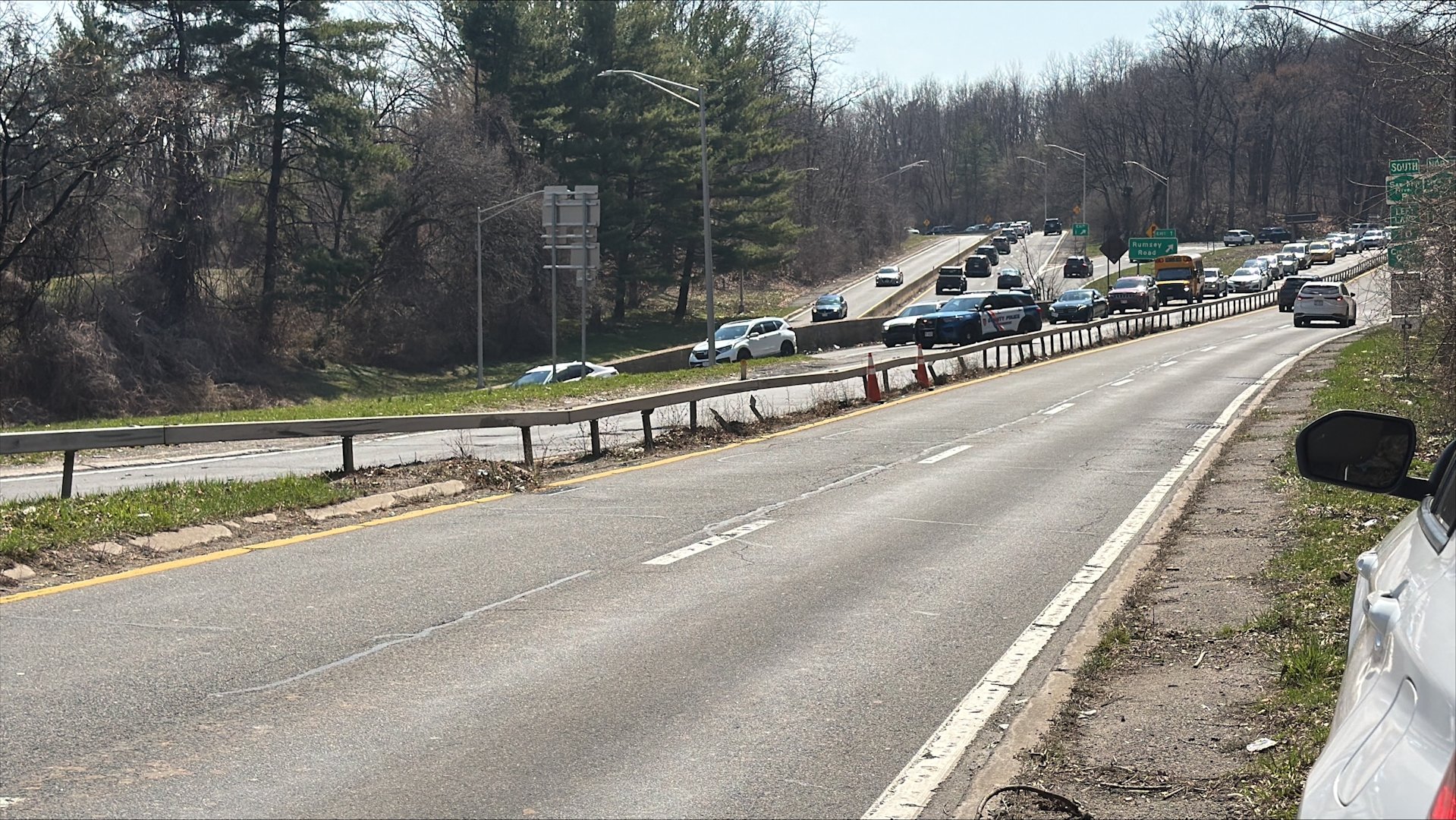 Officials say it happened on the on-ramp to the Saw Mill River Parkway south near Rumsey Road. Traffic is being blocked at the entrance of the ramp, causing delays in the area.