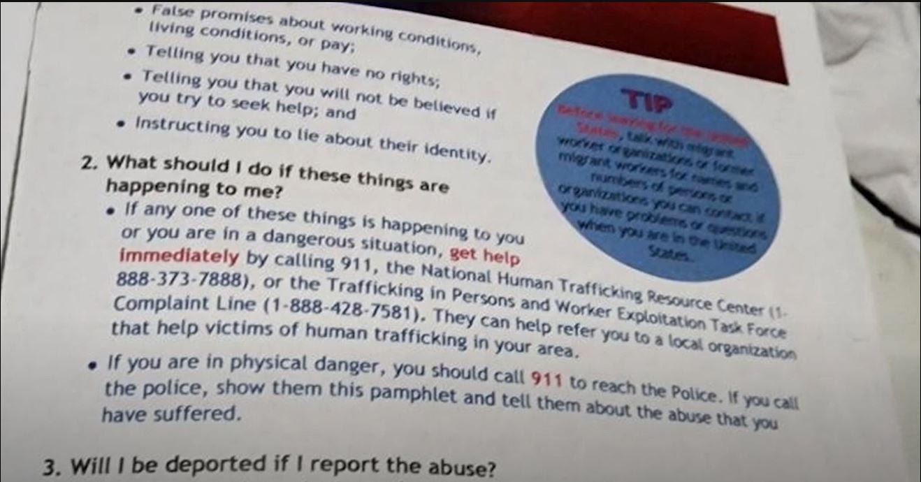 During her most difficult moments, Hilda says she clung to one of the few items she had packed in her suitcase - a flyer she picked up from the embassy back home. It detailed her rights and highlighted help for trafficking victims.