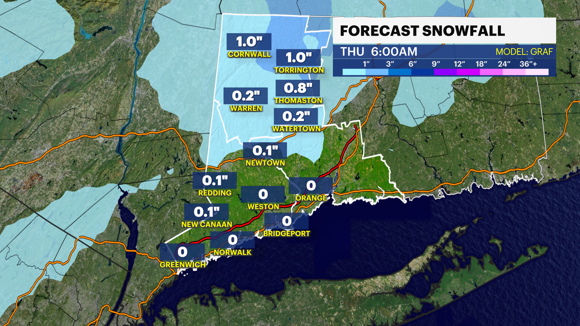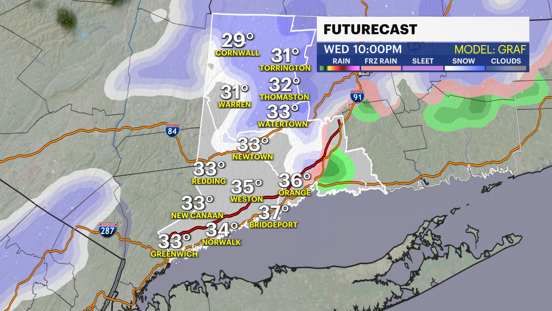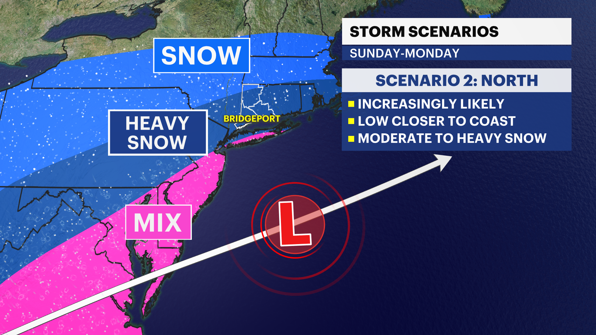 Today's model guidance is centered on a more northward track with the storm and closer to us (compared to yesterday's forecast). That could mean heavier snow for part of the tristate area, including western Connecticut, but also introduce mixing for southern sections.