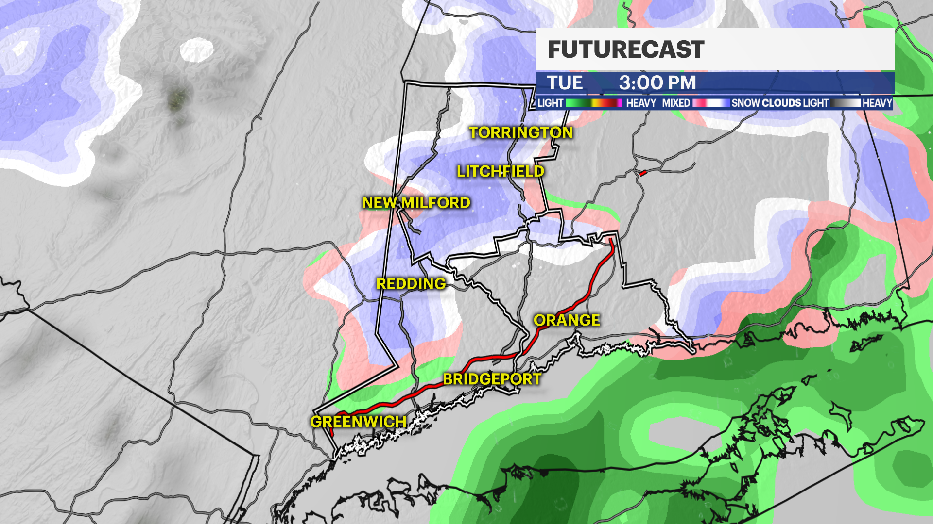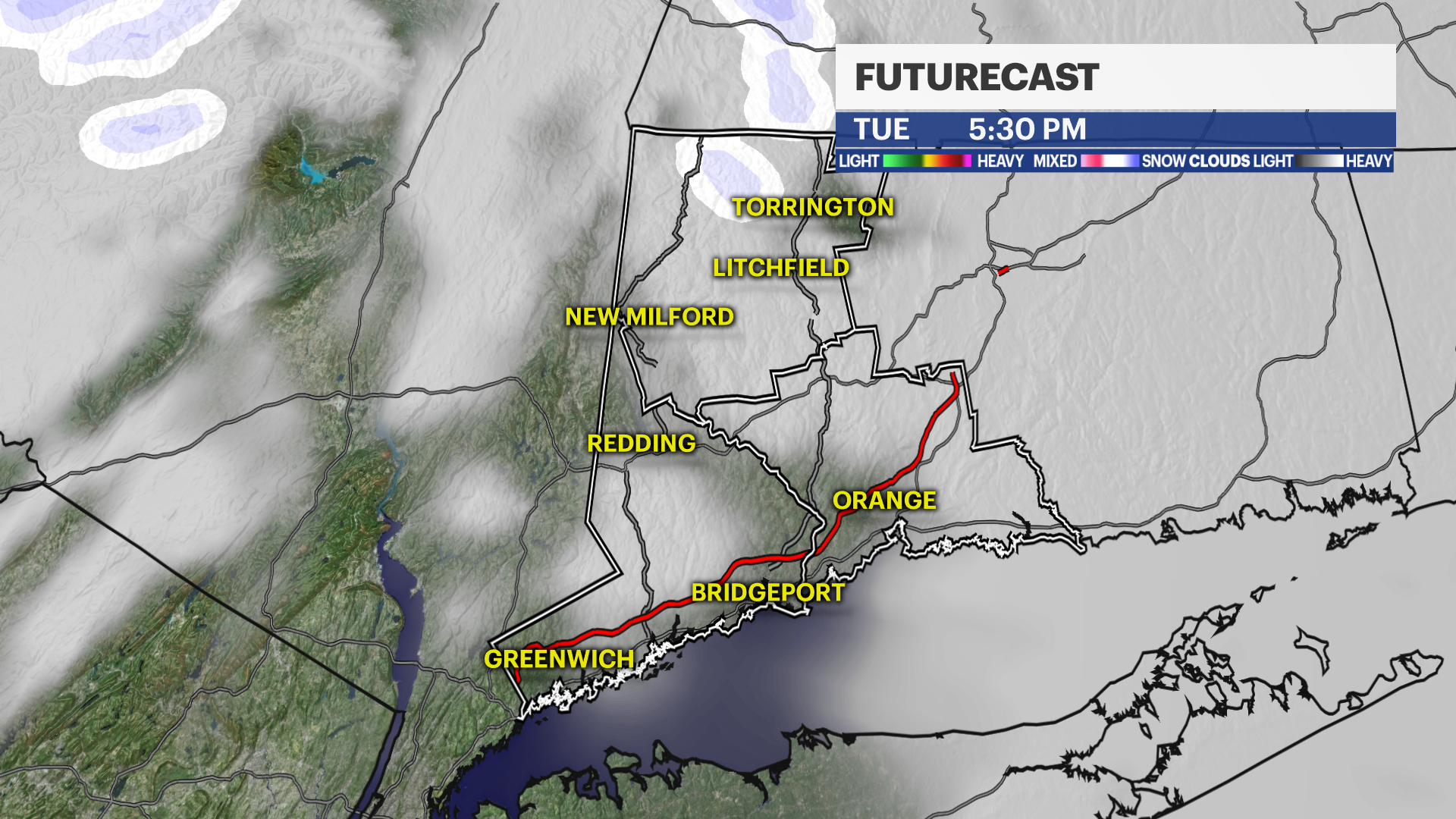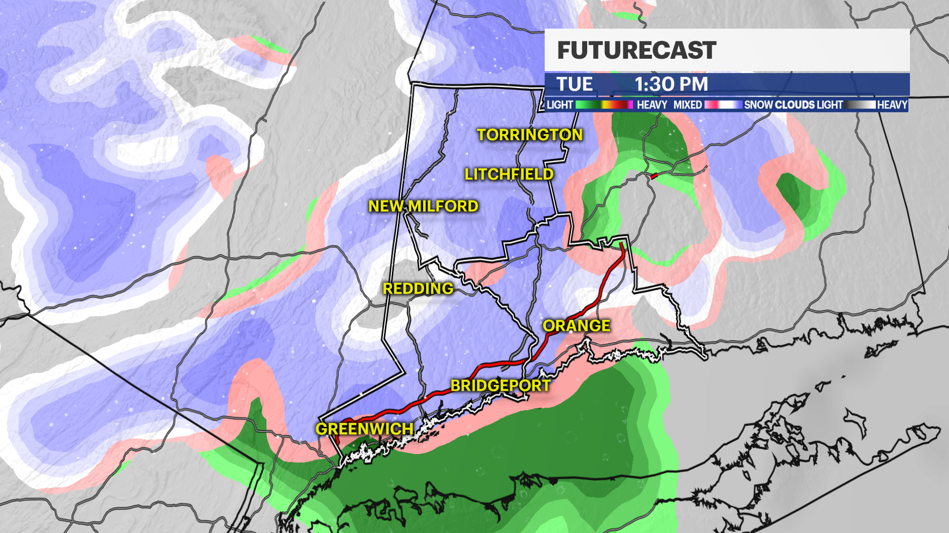 Parts of Connecticut will see light rain and light snow showers Tuesday afternoon, with drier and warmer conditions later in the week.