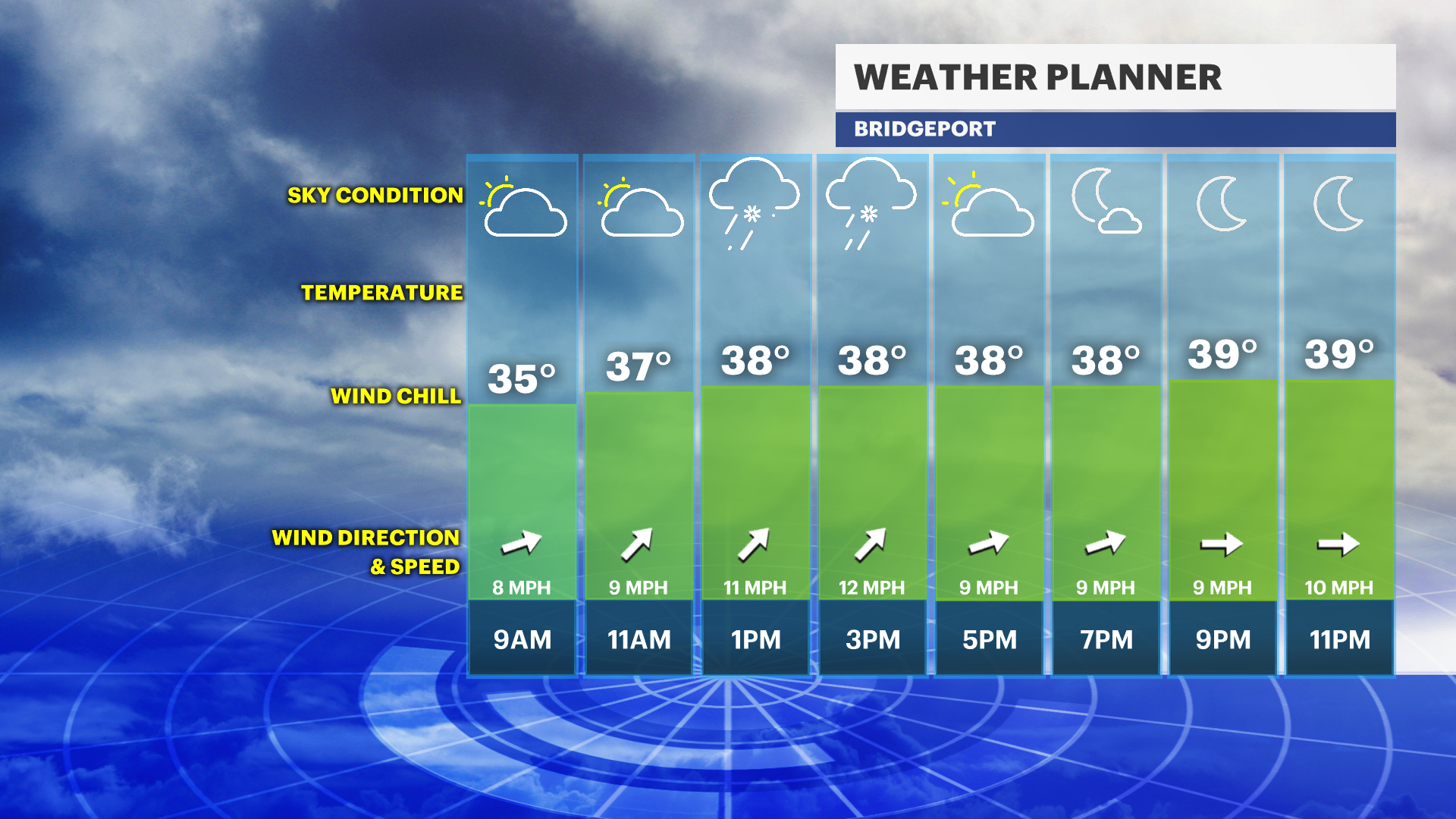The precipitation should pass, and the skies will brighten after 5 p.m. before temperatures drop to the low-30s going into the overnight hours.