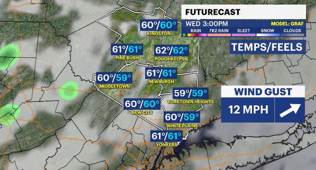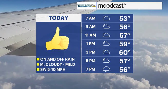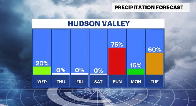- Today is one of the busiest travel days of the year, and the Hudson Valley will see changes. Temperatures will trend warmer than the average high of 49 degrees, with some areas reaching near 60. We are in the warm sector of a storm system that brought showers and downpours yesterday and will bring spotty showers today. A mild southerly flow will keep moisture and temperatures up.