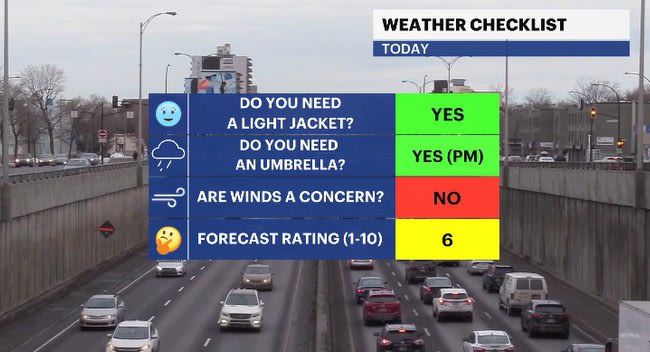 - Sunday: Clouds with late showers. Highs: upper 40s to low 50s.