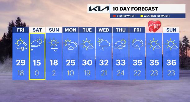Temperatures stay frigid into Monday morning but will get into the low to mid-30s for much of next week. Another chance for winter showers pops up Wednesday.