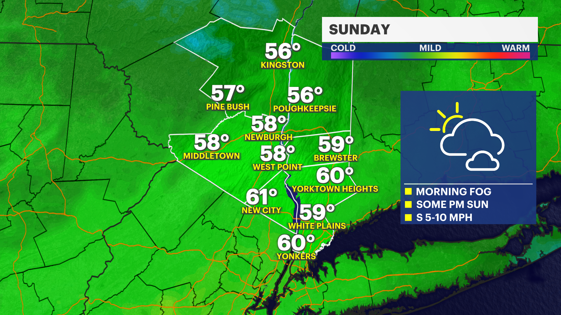 Sunday is gloomy to start, but glorious by the afternoon! High temperatures will approach 60-degrees with mostly cloudy skies.