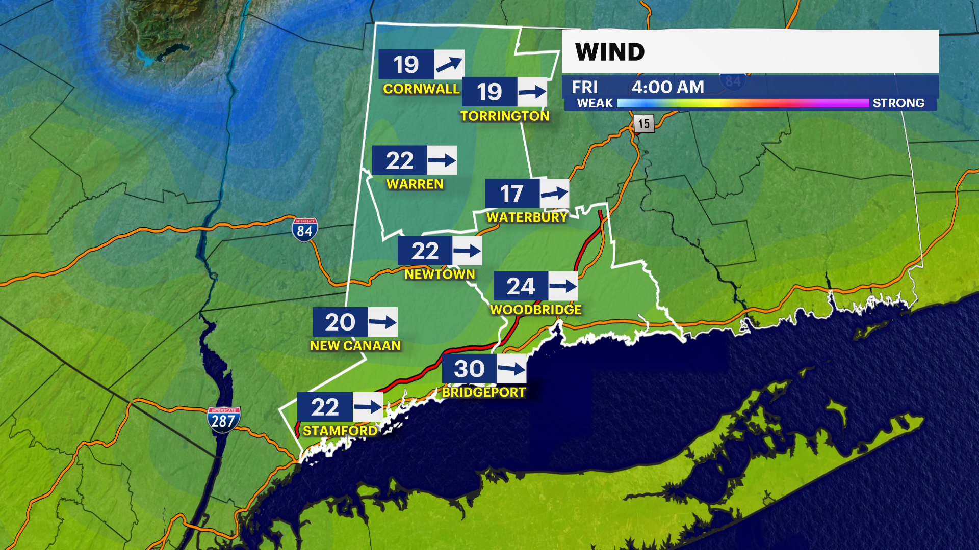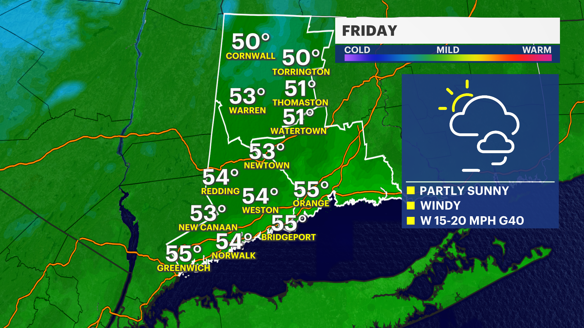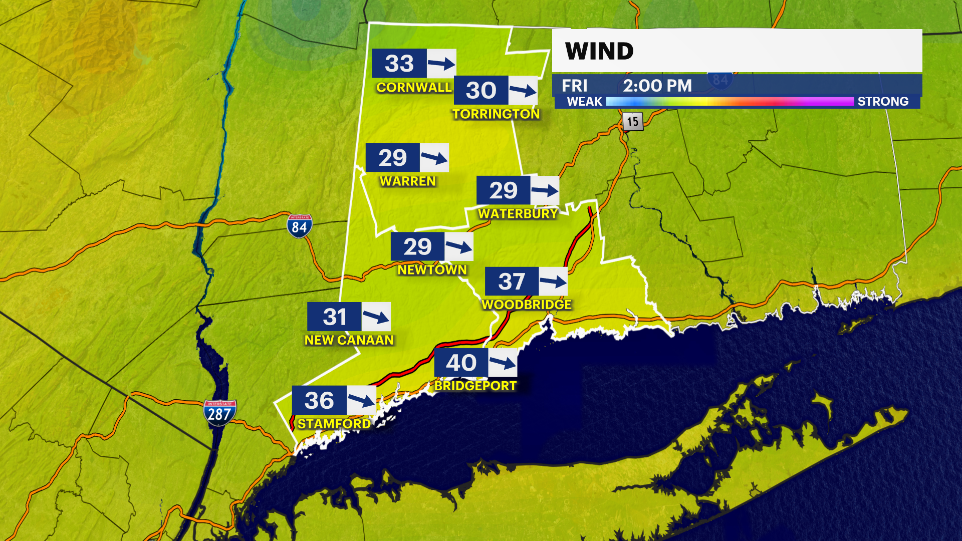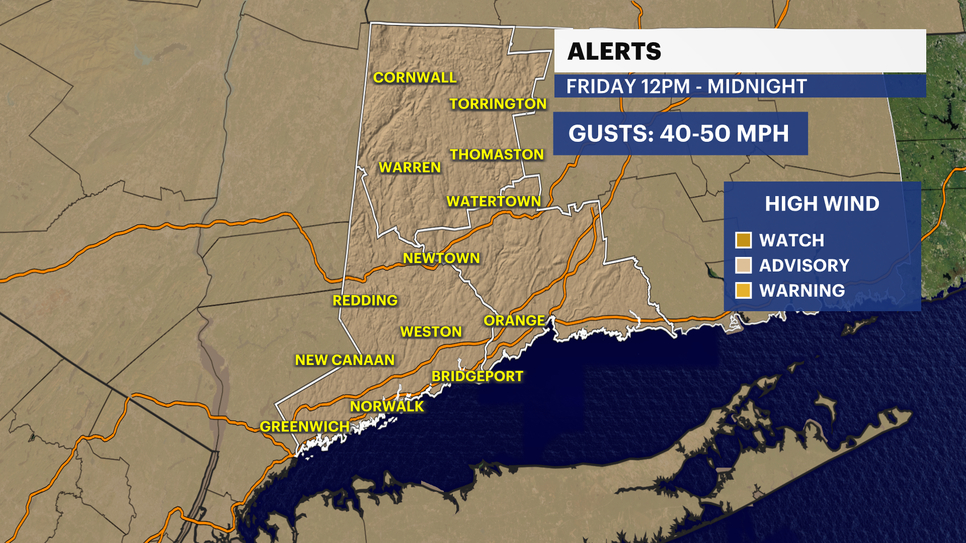 The National Weather Service has issued a wind advisory for Fairfield and Litchfield counties. Gusts will range from 40-45 mph for Fairfield County and up to 50 mph for Litchfield.