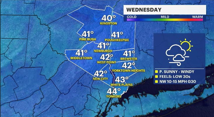 OVERNIGHT: Mostly cloudy, windy, and wind chill values in the 20s. Lows in the 30s.