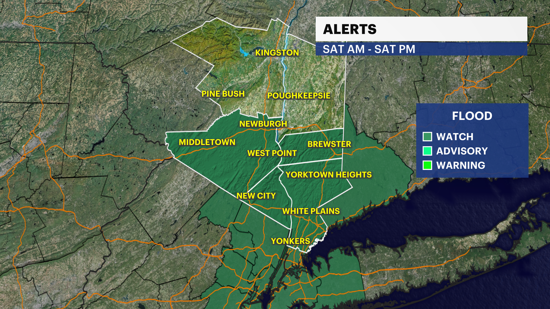 NEW: A flood watch has been issued from 2 a.m. to 8 p.m. Saturday for Orange, Putnam, Rockland and Westchester counties. There is an increasing threat for rain totals near or over 2 inches for some areas resulting in flood concerns.