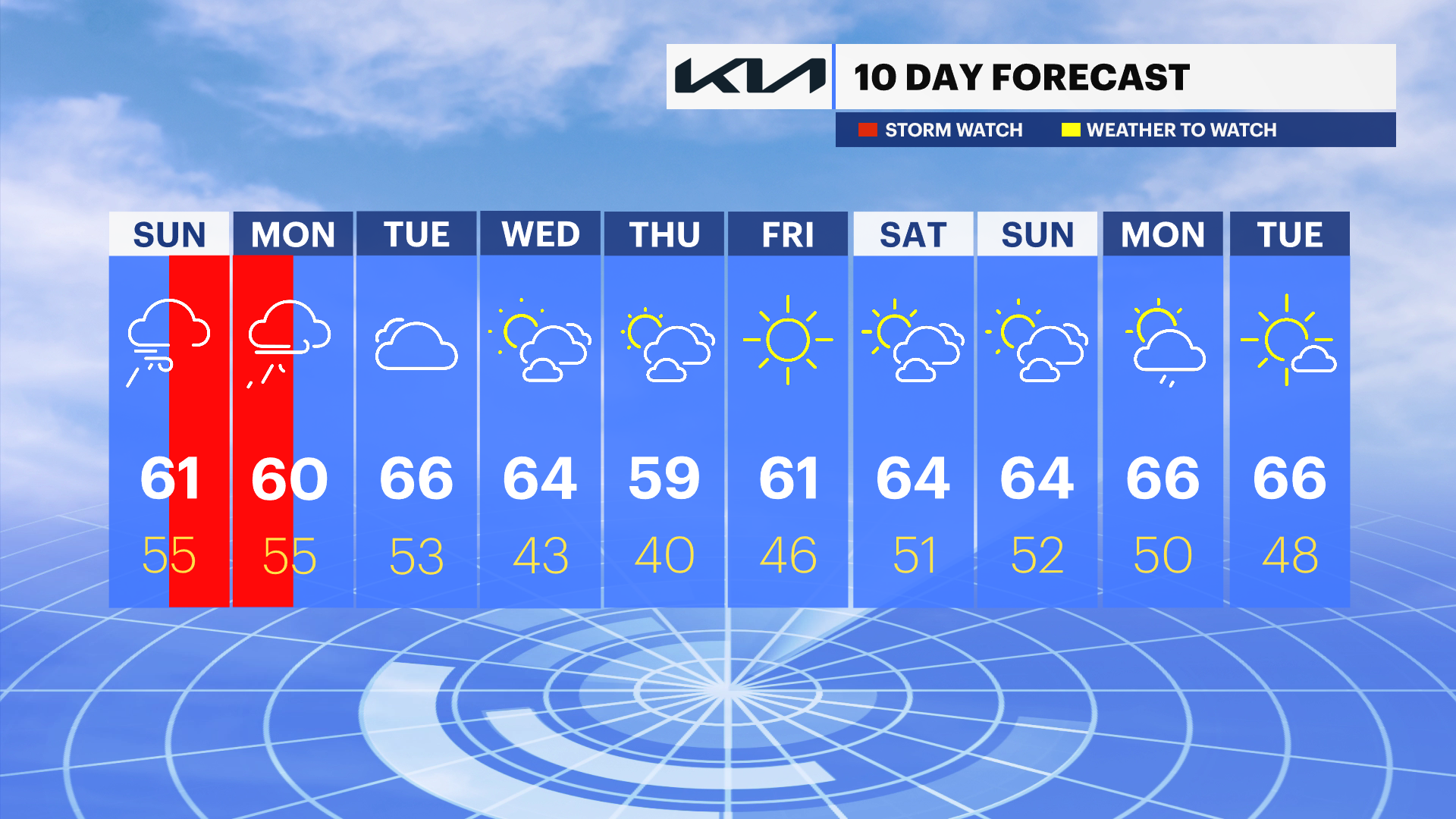 Wednesday: Sunny and pleasant. Highs in the mid 60s. Chilly overnight.