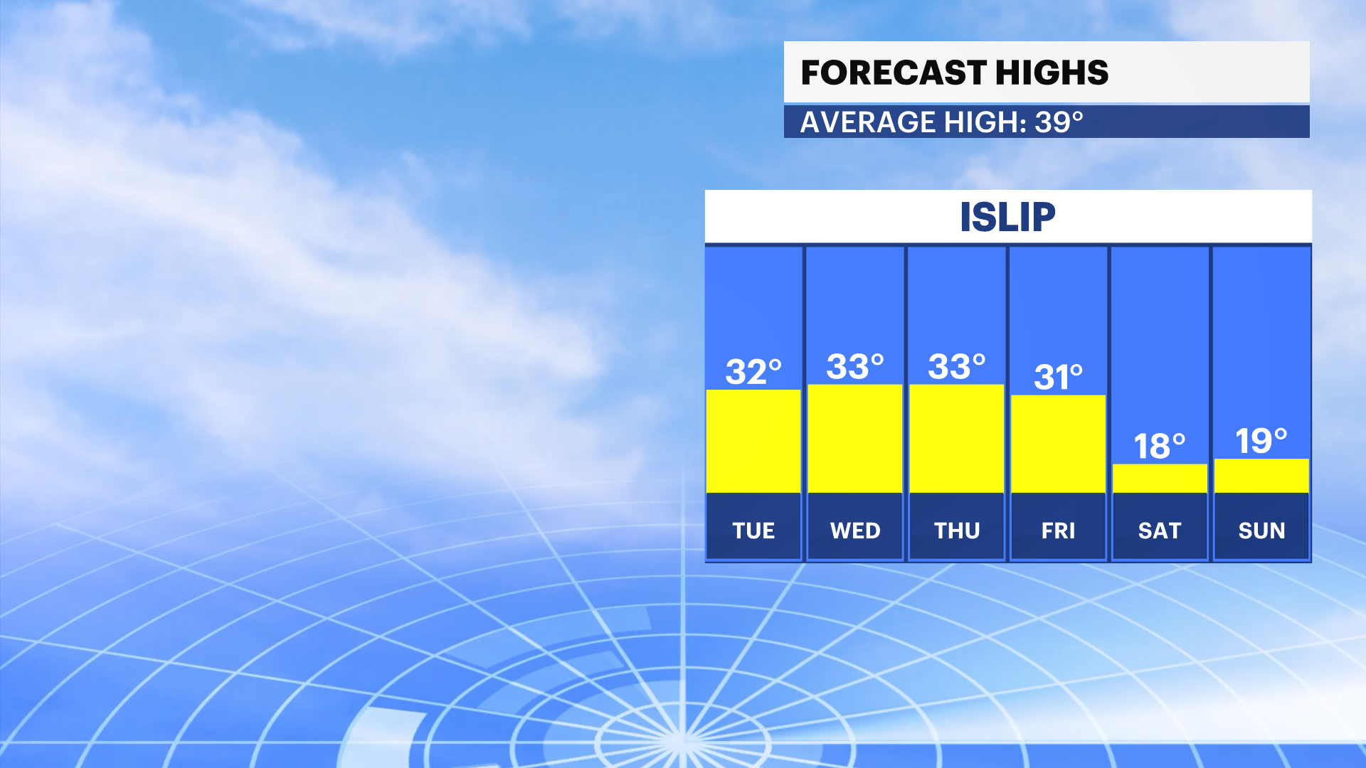 Cold and mostly quiet weather will stick around on Long Island through Thursday. Temperatures stay below freezing, and for the most part it will be dry. A few flurries are possible Tuesday night into early Wednesday morning, but if anything falls, it would just be a light dusting in a few spots.