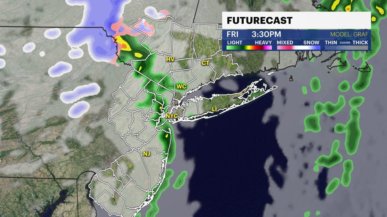 FRIDAY: Moderate rain likely and strong winds during the morning hours. Expecting period of heavy rain that could lead to minor street flooding. Winds will be sustained at 20 to 30 mph, with gusts of 40 to 50 mph.