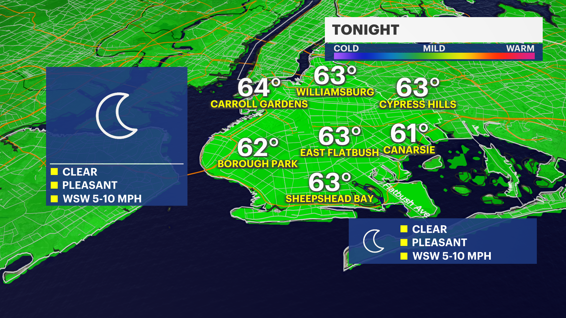 OVERNIGHT: Lows in the 60s, clear and comfy.