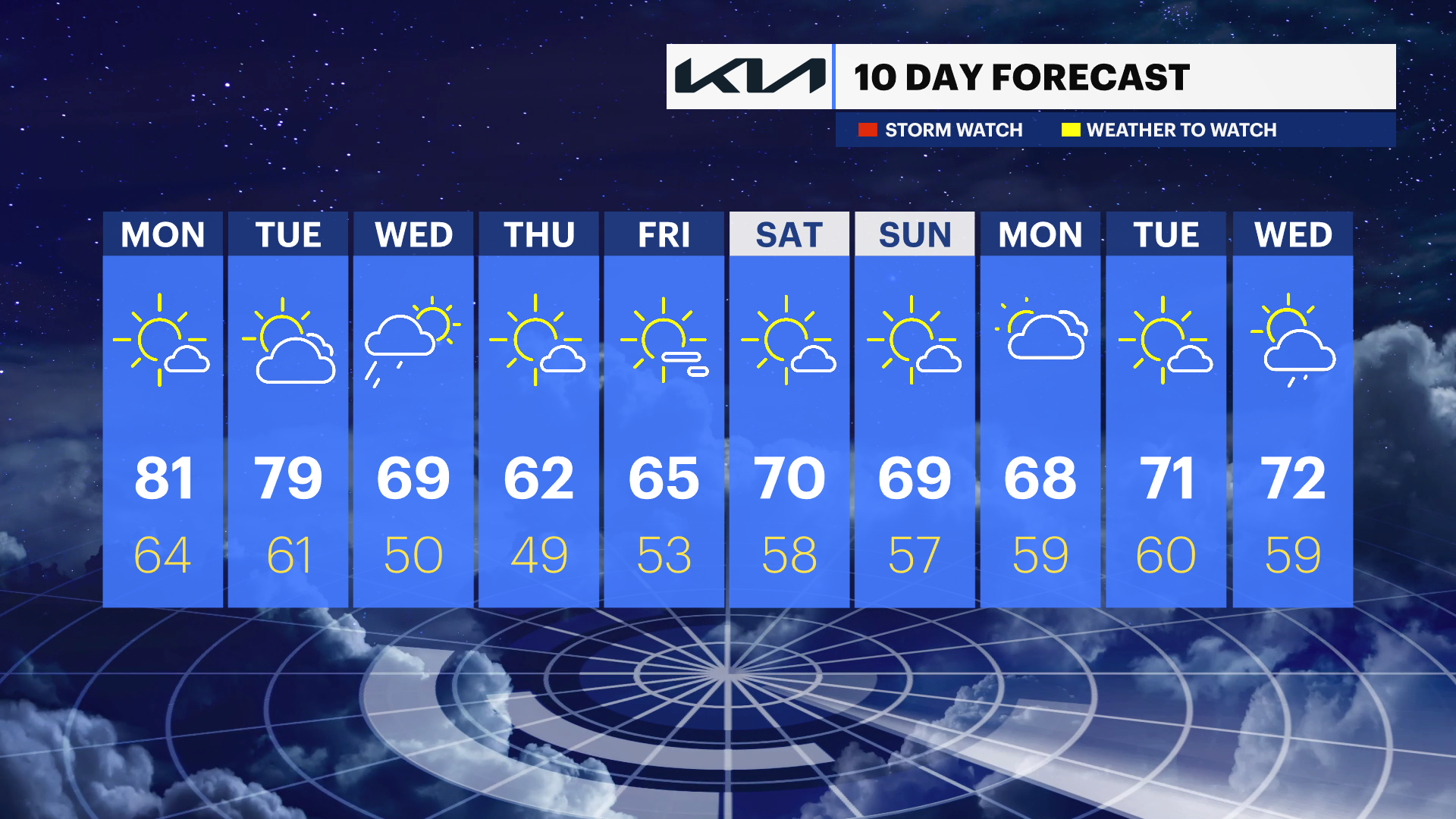REST OF THE WEEK: Sun and clouds with highs in the upper 60s and lows in the 50s.