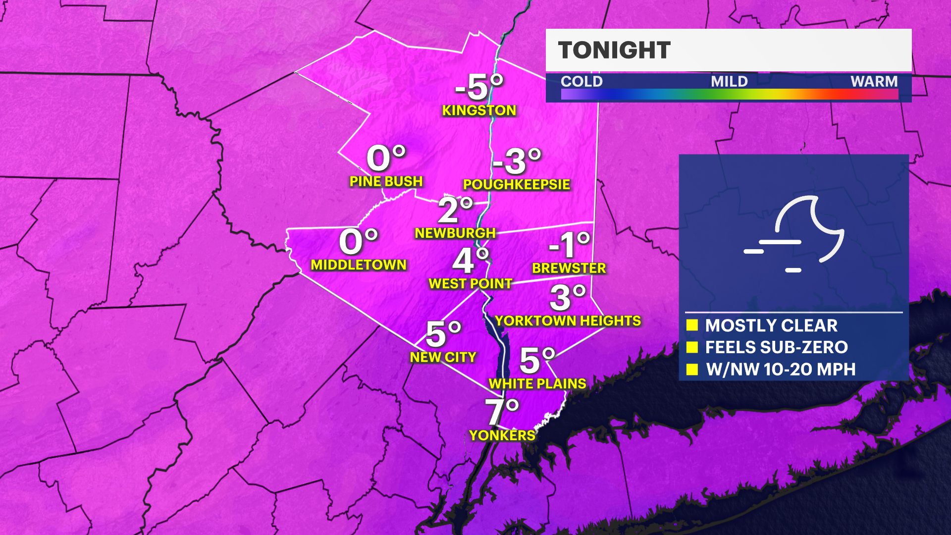 TONIGHT: BITTER BLAST - Mostly clear skies and frigid temps. The wind will be lighter. Lows in the single digits to around zero.
