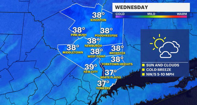 Wednesday is the coldest day of this week, with high temps only topping out in the mid to upper 30s. Temperatures will get milder as the rest of the week progresses though. By Friday, the daytime highs will be getting into the low 50s.