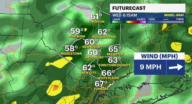 Rainfall will fall overnight into Wednesday morning, wrapping up midday.