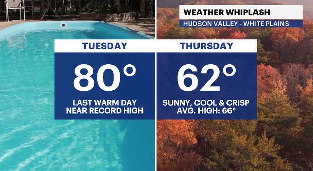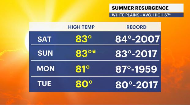 Temps tied record levels yesterday with a high of 83 degrees (record: 83 - 2017) under sunny skies and a warm breeze at White Plains.