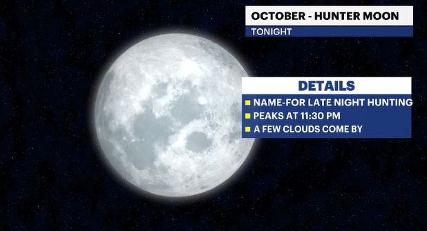 The first of four consecutive supermoons will be visible tonight as the Harvest Moon (The full moon for October) rises tonight. We'll have clear skies and should be able to see it anywhere in the Hudson Valley.