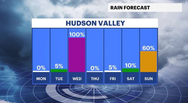 WEDNESDAY: Mostly sunny. Highs: upper 60s to low 70s. Lows: mid-50s.