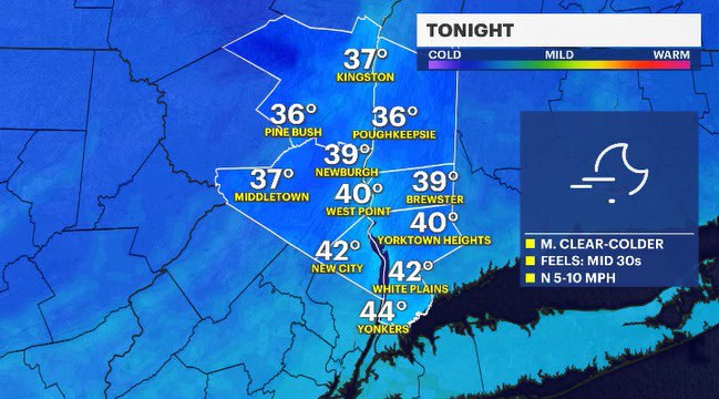 TONIGHT: Mostly clear and trending colder. Lows: mid-30s to mid-40s.