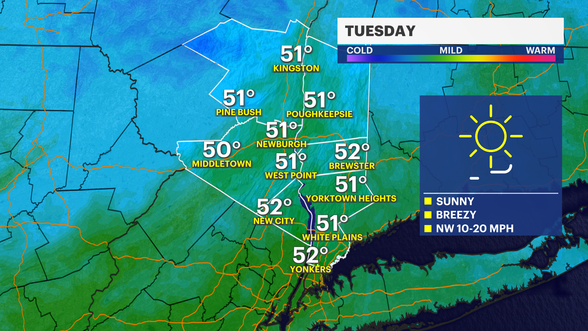 VALENTINE'S DAY - Nice! Sunny and breezy early with highs around 48. Lows