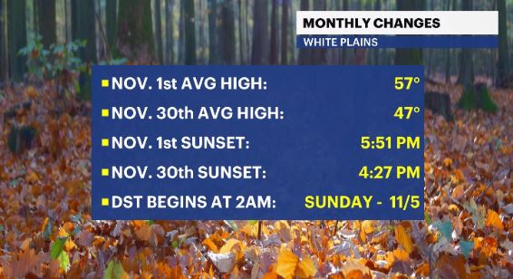 WHAT'S NEXT: A chill will settle in from Wednesday night into Thursday, and a Freeze Watch is in place for southern Westchester County during that time frame. Temperatures will continue to bounce back Thursday and into the weekend, with the Pick of the Week arriving Saturday, with mostly sunny skies and a high of 60.