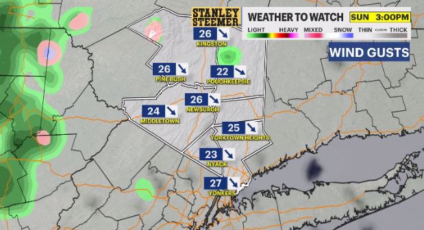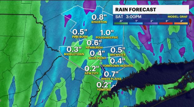 News 12 Storm Watch Team Meteorologist Addison Green says the Hudson Valley will see on and off scattered showers into Saturday morning before a breezy afternoon.