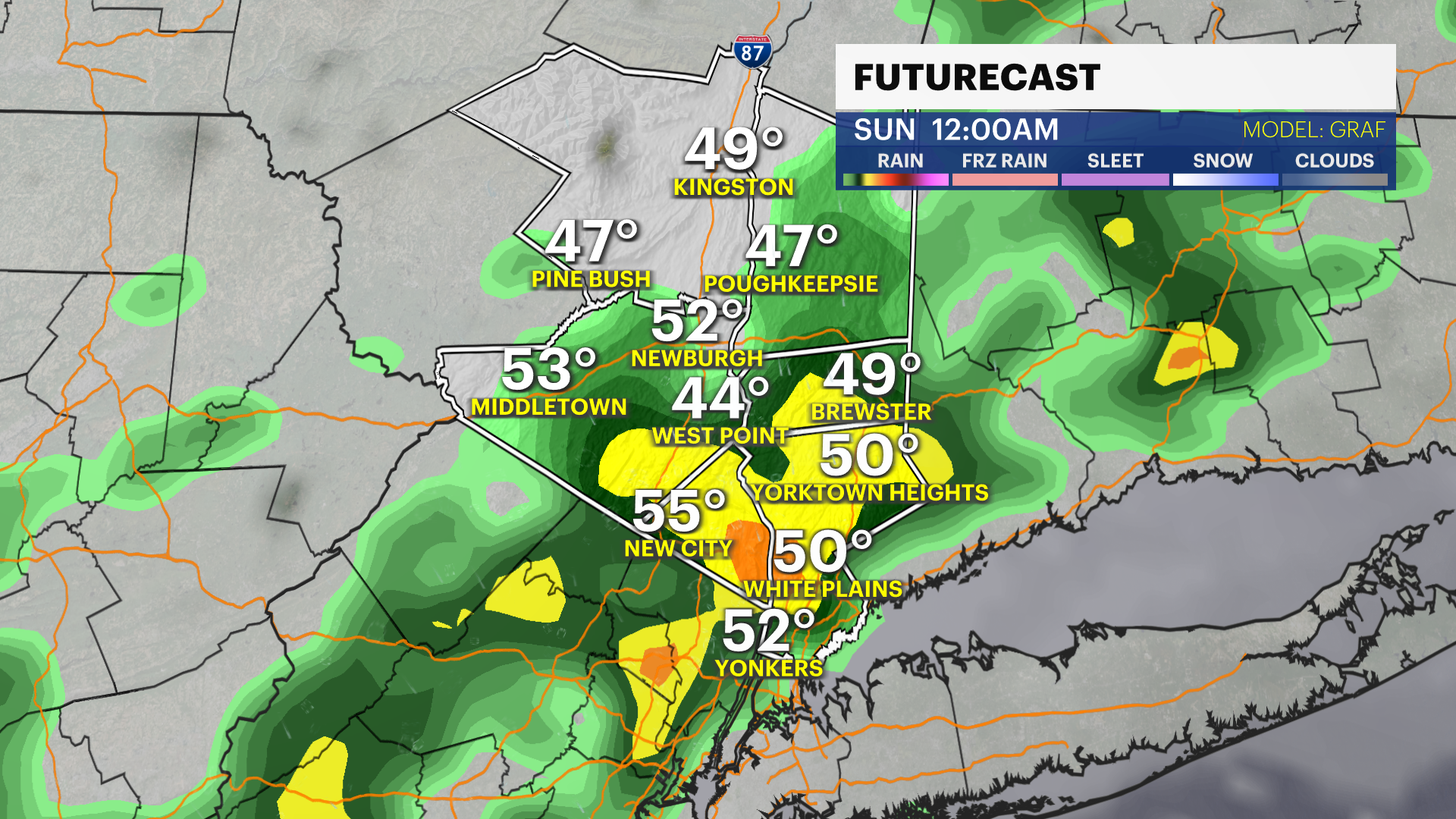 The temperatures will be warming from Saturday into Saturday night and Sunday morning. The extra warmth will provide a little more fuel for these storms. The presence of thunder will be infrequent, but the chance isn't zero either. Daily highs for Sunday will reach into the low 60s, maybe warmed a degree or two more with some late day sun as the storms pass.