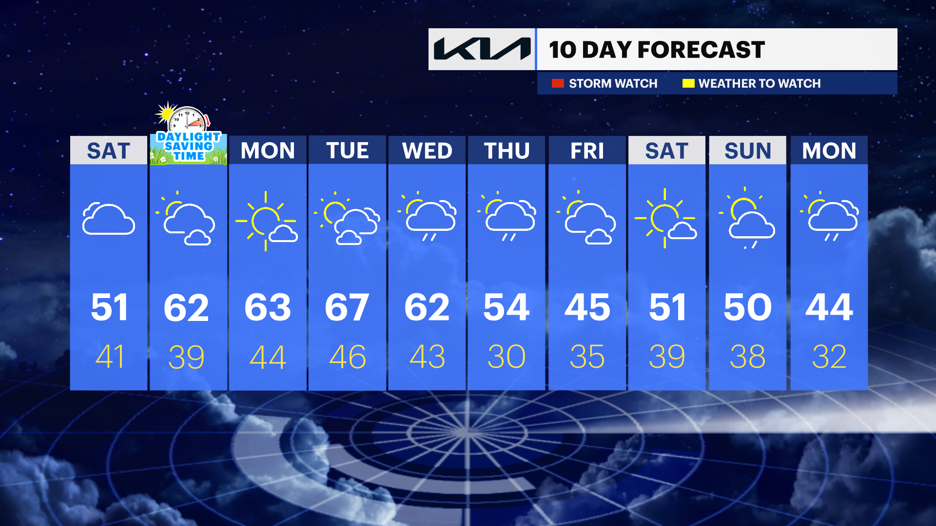 Speaking of this weekend, we "Spring Forward" with Daylight Saving Time starting Sunday morning. At 2 a.m. Sunday, the clocks will jump forward an hour. We get an extra hour of daylight but loose an hour of sleep.